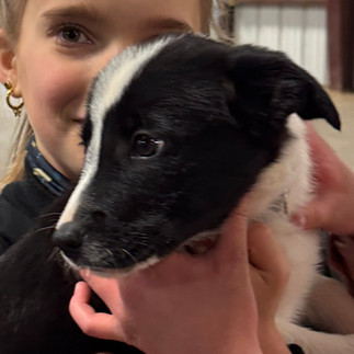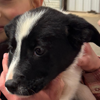 Flynn is a sweetheart through and through. He melts into your arms when held and has a naturally calm, observant demeanor. But don’t be fooled — he’s also got a spark! Flynn is fascinated by the farm animals and watches them closely, already showing great instinct. He’s people-focused, eager to please, and highly trainable — ready to thrive in a working, sport, or active family home.